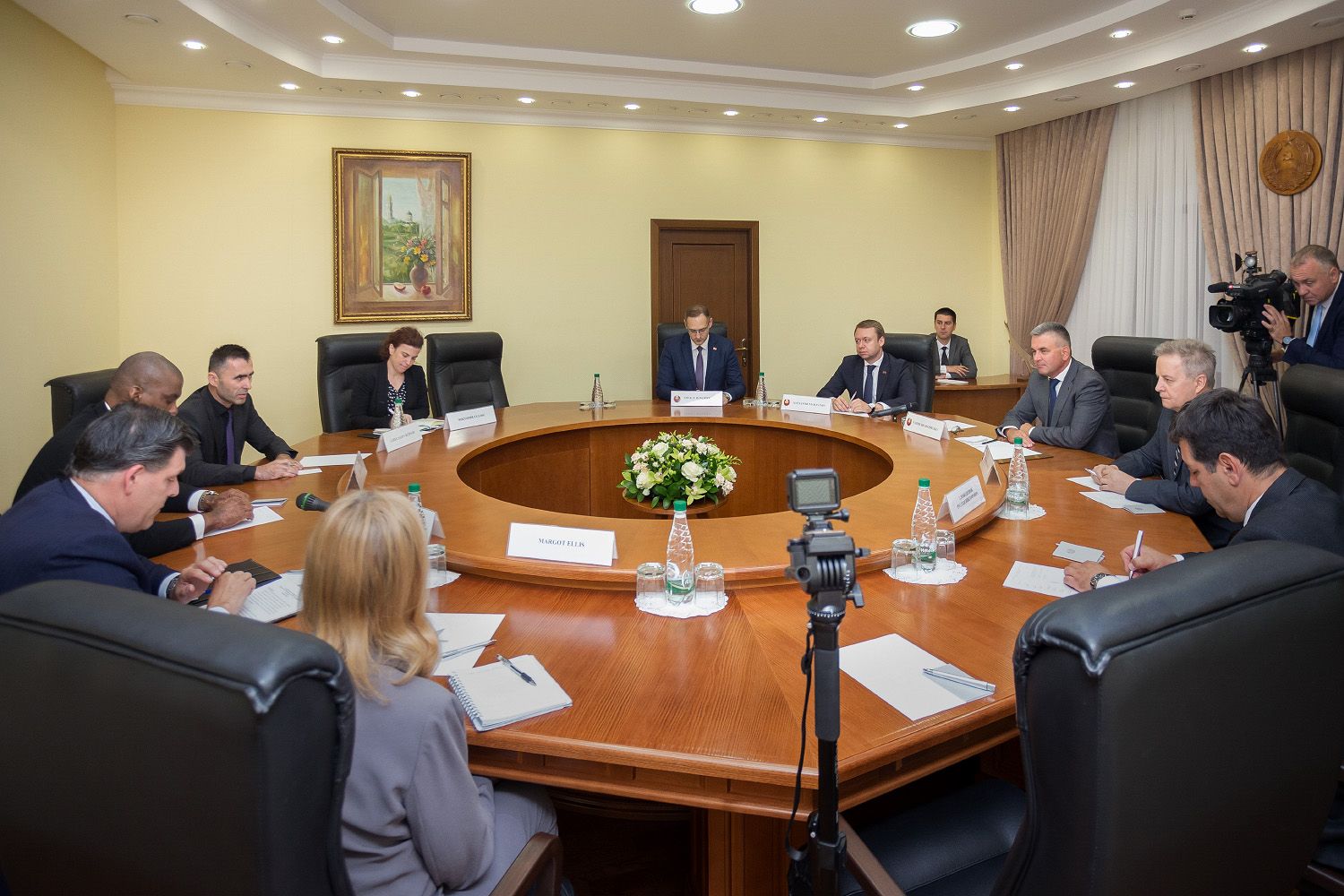 Тирасполь, 10 июля. /Новости Приднестровья/. Президент ПМР Вадим Красносельский сегодня провёл встречу с делегацией США, в составе которой были Чрезвычайный и Полномочный Посол США в РМ Дерек Хоган, заместитель администратора Агентства США по международному развитию по Европе и Евразии Брок Бирман и их коллеги, сообщает пресс-служба главы приднестровского государства.