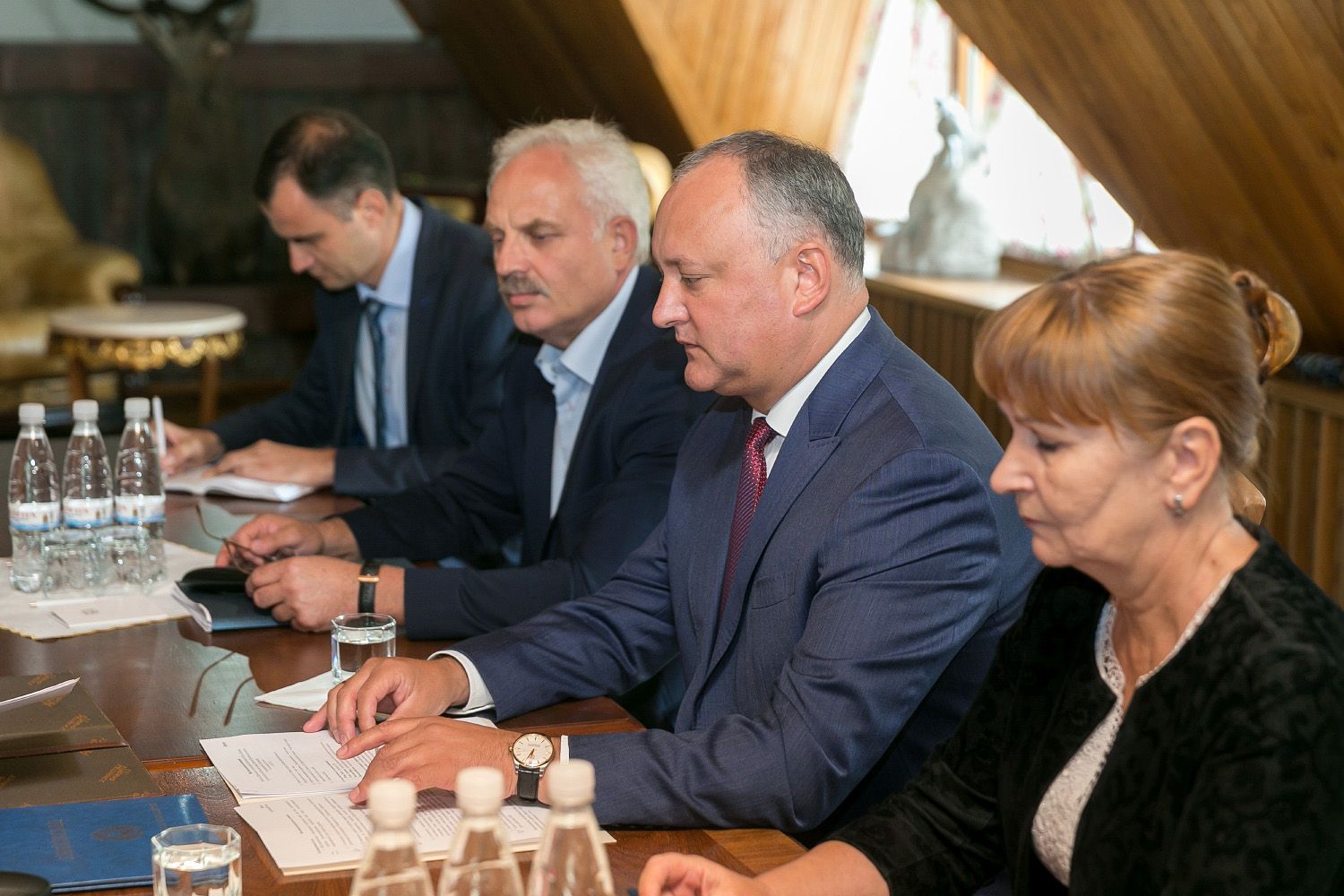 Игорь Додон отметил, что рад приветствовать приднестровских коллег на молдавской земле и подчеркнул, что это первая за долгие годы подобная встреча на площадке государственной резиденции Президента РМ.
