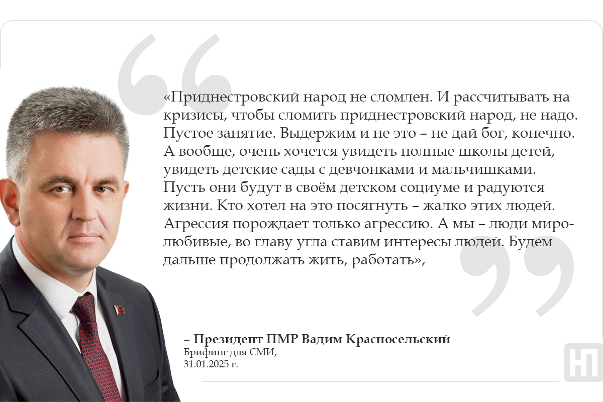 Цитаты Президент ПМР Вадим Красносельский: Приднестровский народ не сломлен 01 Фев.., 2025, 17:45 Президент приднестровский народ