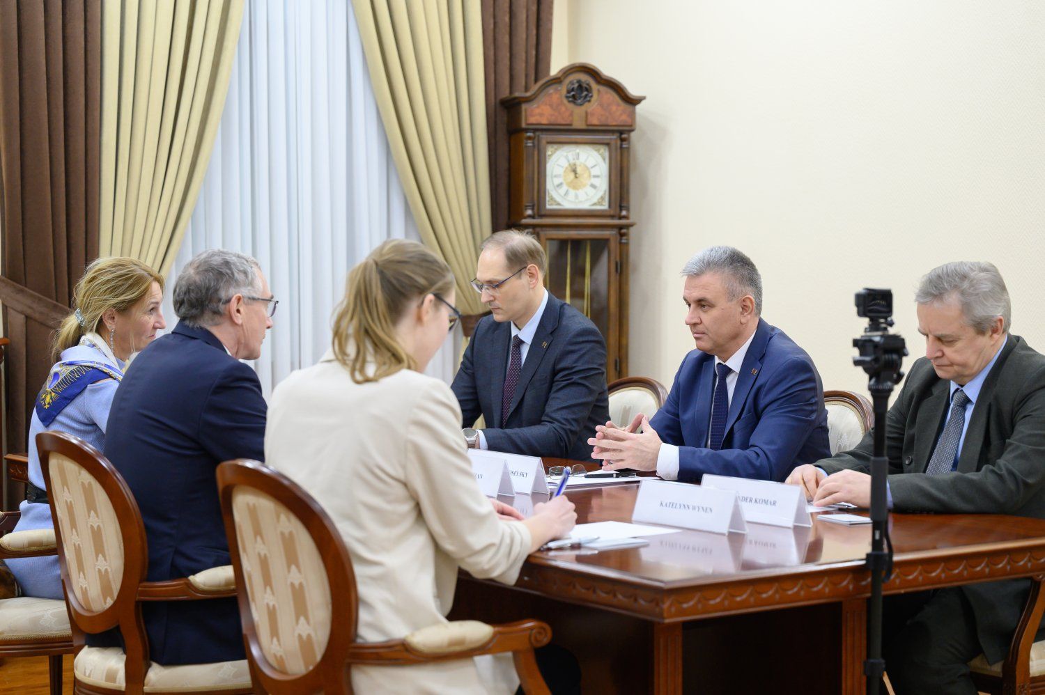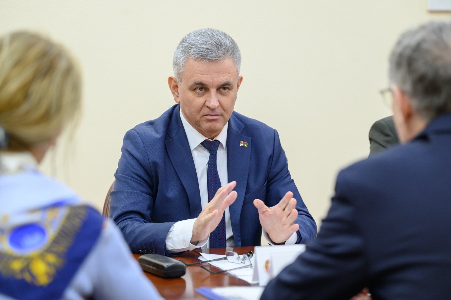 Приветствуя гостей, Президент ПМР подчеркнул, что ценит внимание к Приднестровью. Вадим Красносельский говорил о стремлении приднестровцев решать все вопросы исключительно за столом переговоров, и это принципиальная позиция. Глава государства при этом констатировал, что молдо-приднестровские переговоры заморожены с 2019 года. Все попытки приднестровской стороны возобновить работу формата «Постоянного совещания…» пока безуспешны: Молдова, прервав продуктивное взаимодействие в рамках «5+2», не идет на диалог.