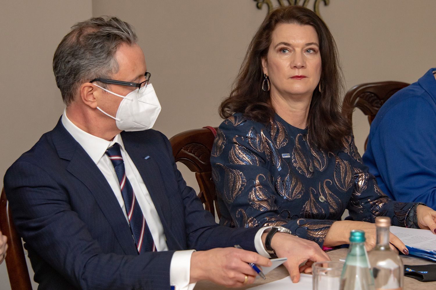 Приветствуя гостей, Вадим Красносельский отметил тот факт, что это первый визит главы внешней политики Швеции в Бендеры за 313 лет, выразив надежду, что он будет более позитивным, чем во времена Карла XII. Собеседники отметили значимость места, где проходит встреча, для истории как Приднестровья, так и Швеции.