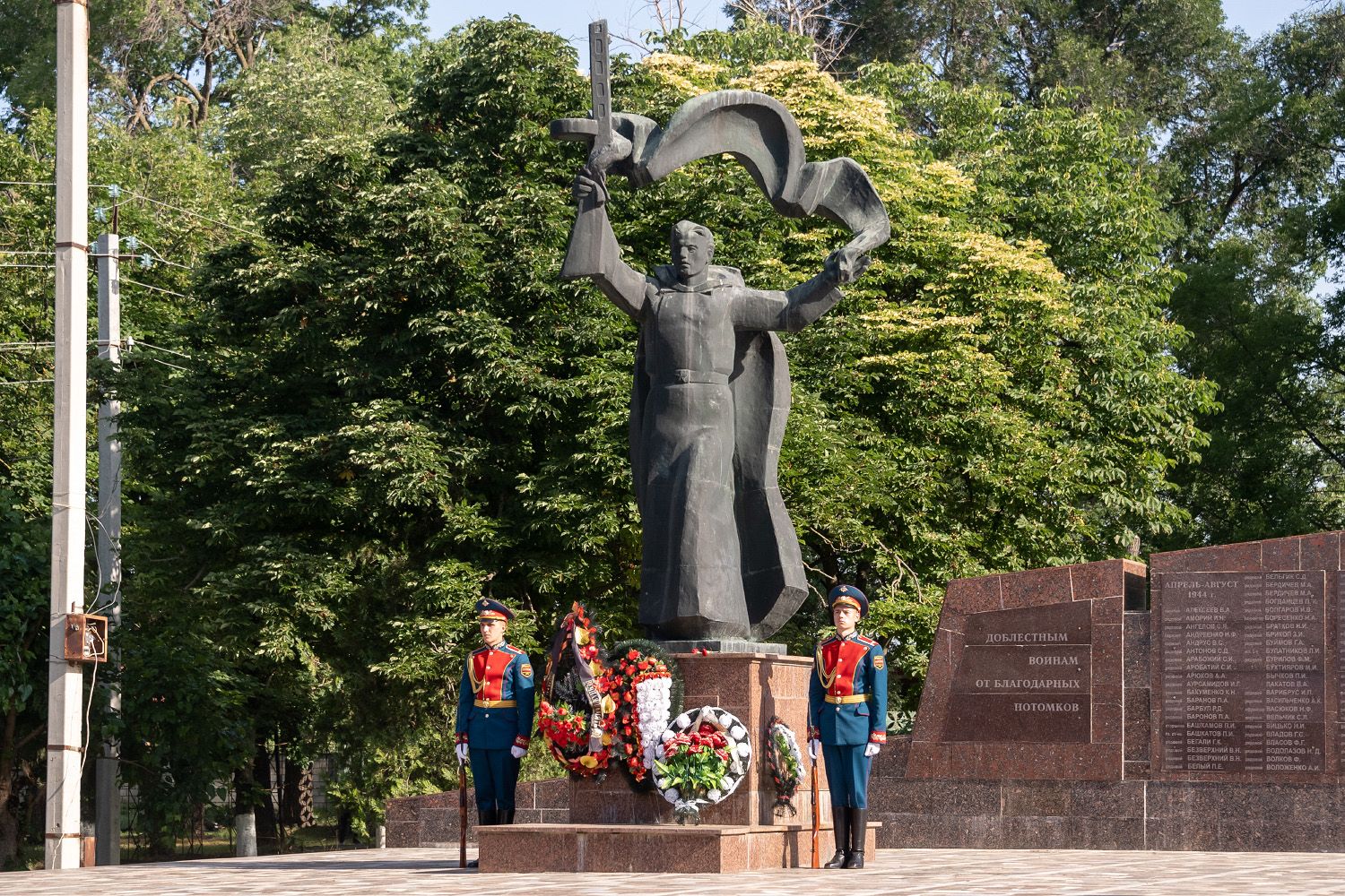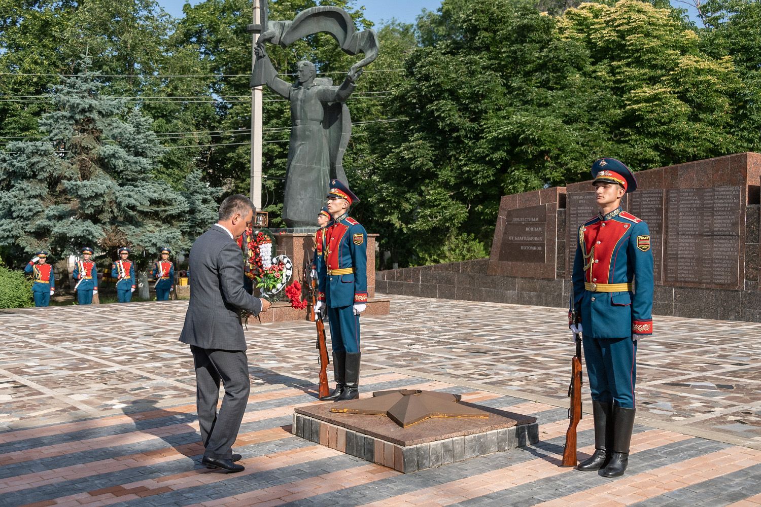 Президент ПМР возложил цветы к памятному знаку погибшим военнослужащим инженерно-сапёрного батальона