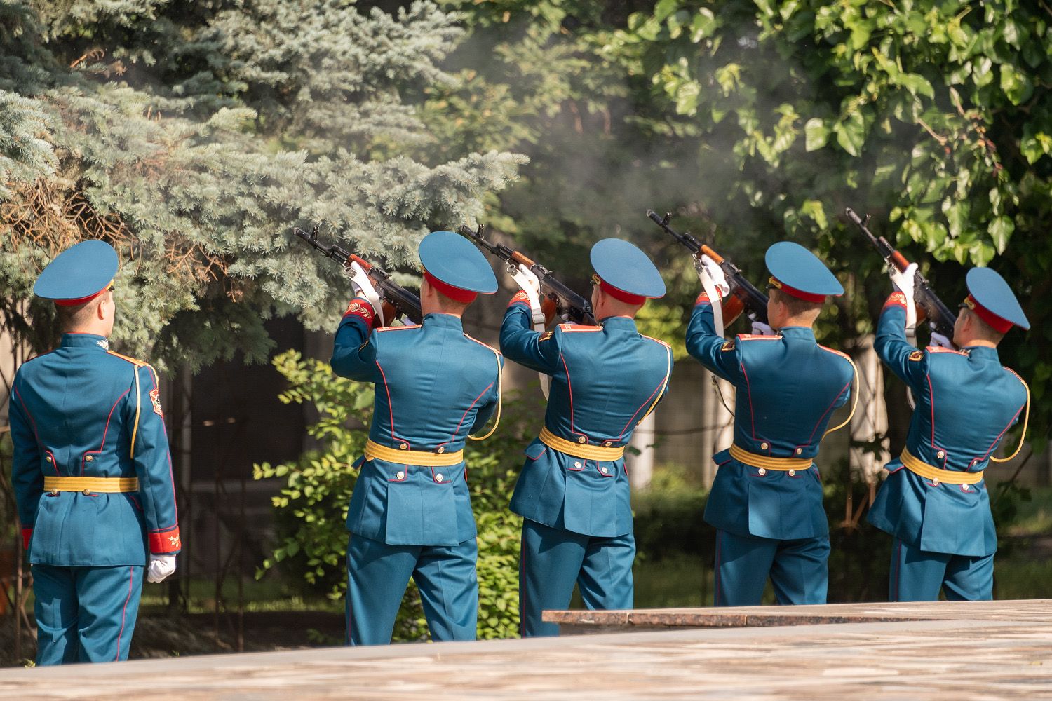 После церемонии возложении цветов участники траурного мероприятия выдвинулись в парк инженерно-саперного батальона, где на месте взрыва, произошедшего в 1992 году, установлена памятная стела.