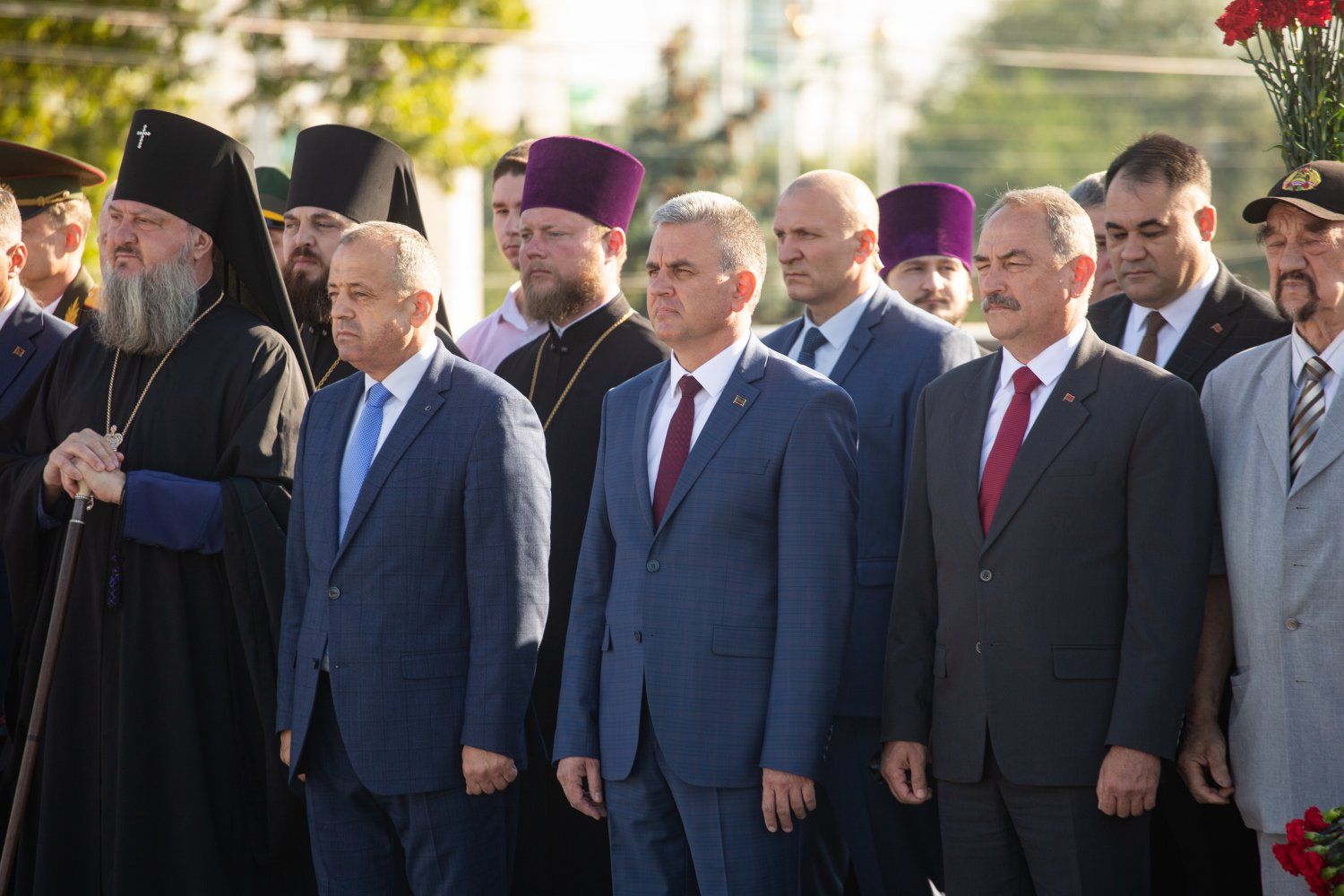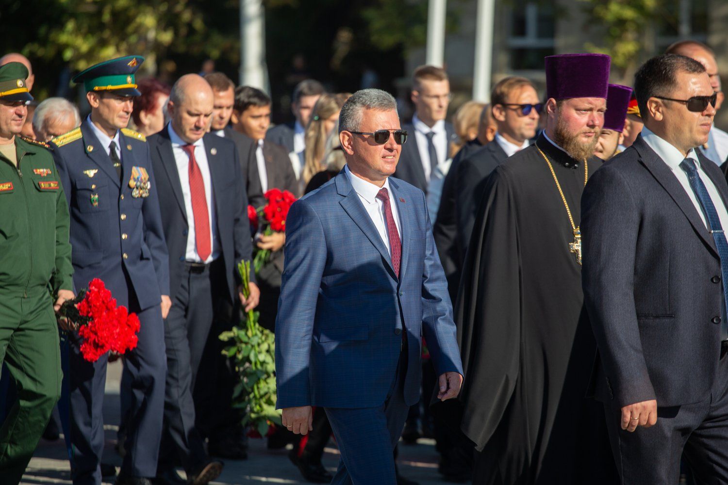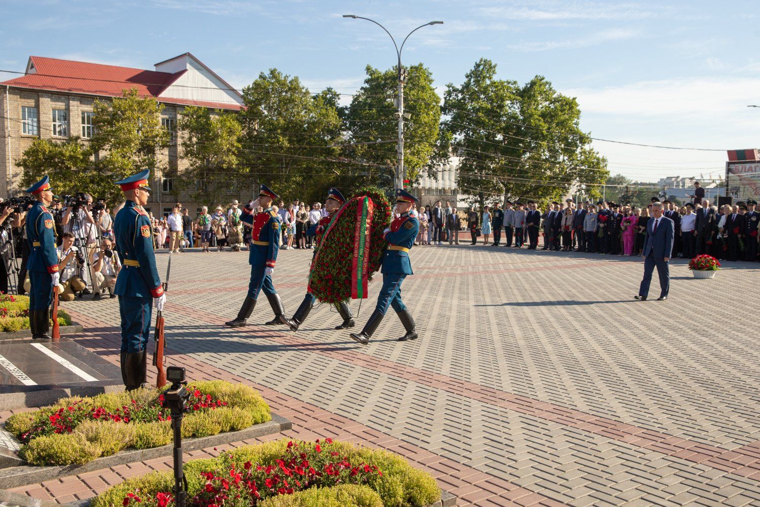 От имени народа Приднестровья в ознаменование 33-й годовщины образования Приднестровской Молдавской Республики Президент ПМР Вадим Красносельский возложил памятный венок к Вечному огню тираспольского Мемориала Славы и россыпь символичных алых гвоздик к каменным плитам с именами защитников, отдавших жизни, защищая приднестровскую землю, навечно упокоены в которой больше восьми сотен героев. Память погибших и умерших защитников, а также жертв агрессии молдавских националистов почтили Минутой молчания.