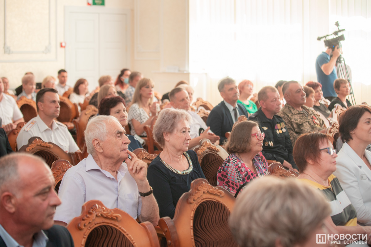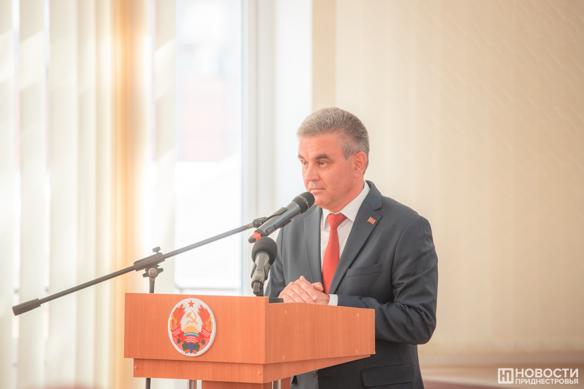 «В этом зале находятся представители приднестровского народа – те, кто его защищает, те, кто учит, лечит, работает в реальном секторе экономики, представители всех ветвей власти, - сказал Вадим Красносельский. - Я рад, что имею возможность поблагодарить за ваш ратный подвиг, за трудовой подвиг. Как бы ни было нам сложно, это абсолютно объективно, мы не сидим сложа руки и не ищем оправданий и причин безделья. Мы будем развиваться дальше: ремонтировать школы, больницы, строить парки, спортивные площадки, досуговые центры. Мы будем улучшать жизнь приднестровцев и, конечно же, сохранять мир на нашей земле».