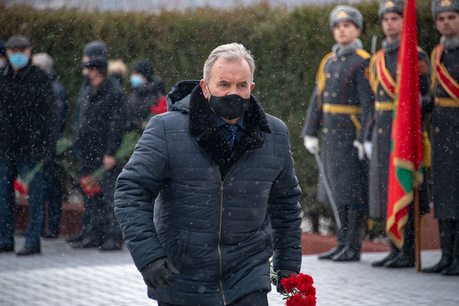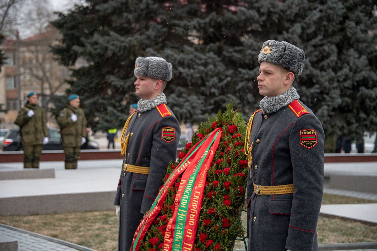От имени приднестровского народа венок к памятнику Воину-афганцу и цветы к подножию памятника Скорбящей Матери возложил глава государства Вадим Красносельский.