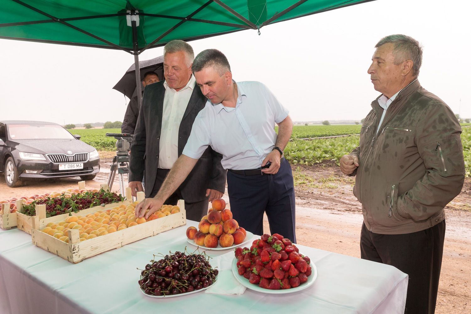 На площади в шесть тысяч гектаров, расположенных в селе Карагаш, ООО «Рустас» выращивает технические культуры, овощи и фрукты. 30% земель орошаются различными способами. Работники предприятия поблагодарили президента за снижение цены на воду для полива до 70 копеек за кубометр, ранее тариф составлял 90 копеек за кубометр, сообщает президентская пресс-служба.