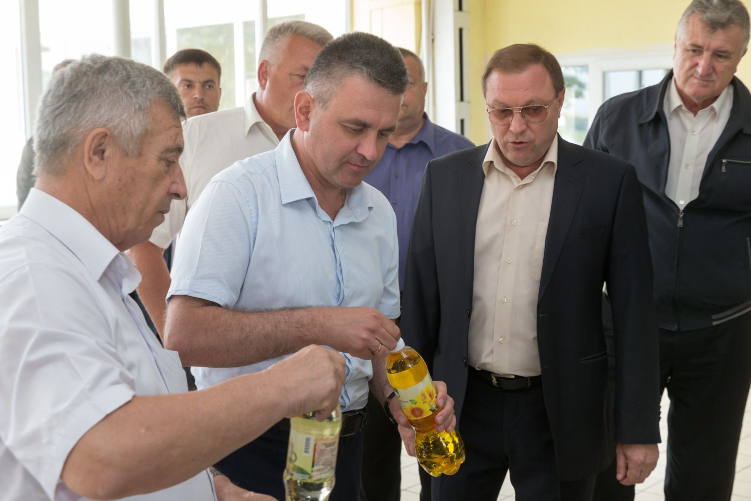 Производство подсолнечного масла — новое направление, освоенное в этом году в ООО «Холпарк» (село Парканы). Директор предприятия Николай Неделков рассказал президенту, что на современном оборудовании в год можно переработать до 5,5 тысяч тонн подсолнечника. Линия работает круглосуточно и почти круглогодично. В час производится до 800 бутылок рафинированного и нерафинированного подсолнечного масла.