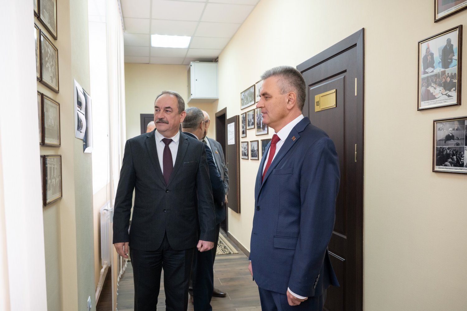 Сегодня коллектив приднестровского парламента поздравил Президент ПМР Вадим Красносельский. Глава государства ознакомился с экспозицией, подготовленной к праздничной дате. Фотоматериалы – своего рода иллюстрации к летописи приднестровского парламентаризма – от Временного Верховного Совета до сегодняшнего дня. На архивных фотографиях события и люди, сыгравшие важную роль в создании и становлении страны и ее ровесника – органа законодательной власти. Экспозиция собрана из 123 снимков. Содействие в создании выставки оказали пионеры приднестровского парламентаризма – Анна Волкова и Вячеслав Загрядский. Использованы работы фотографов Валерия Кругликова и Лемара Корзилова, а также кадры, собранные в разные периоды и сохраненные сотрудниками пресс-службы Верховного Совета.