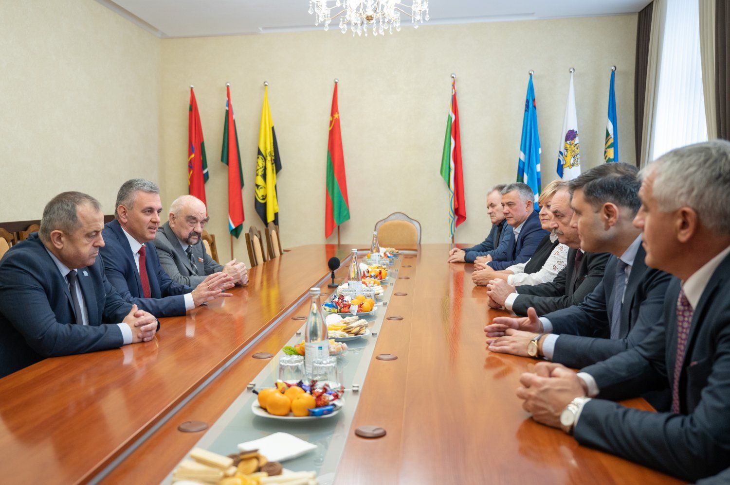 Как сообщает президентская пресс-служба, слова особой благодарности Вадим Красносельский адресовал основателям республики, создателям Верховного Совета и лично Игорю Смирнову, принявшему участие в сегодняшней встрече. Собеседники отмечали преемственность и тесное взаимодействие различных поколений приднестровских парламентариев. При Верховном Совете действует Молодежный парламент и созданное по инициативе Вадима Красносельского Совещательное собрание первых приднестровских депутатов.