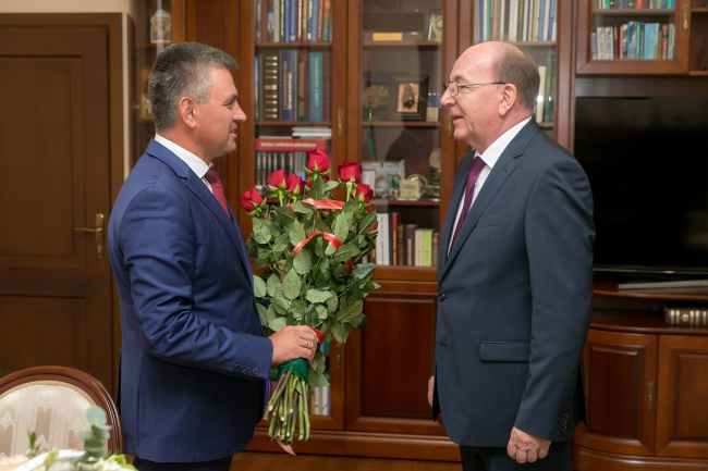 Тирасполь, 27 сентября. /Новости Приднестровья/. Президент ПМР Вадим Красносельский лично поздравил Чрезвычайного и Полномочного Посла Российской Федерации в Республике Молдова Олега Васнецова с 65-летием.