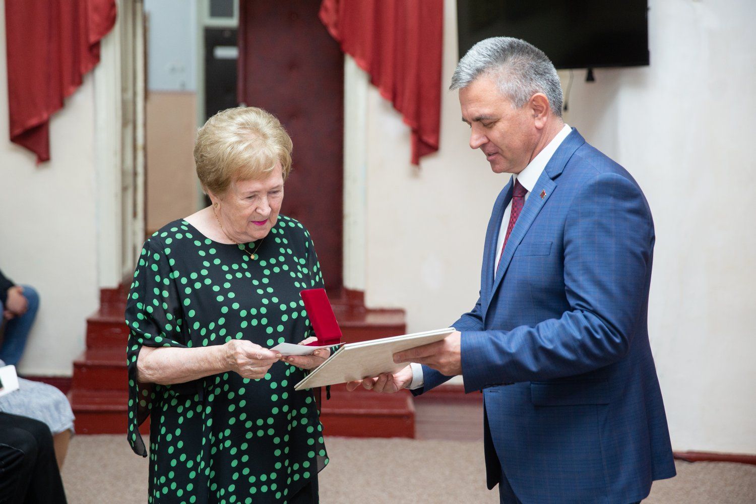 Вадим Красносельский вручил педагогу удостоверение и нагрудный знак «Заслуженный работник ПМР»