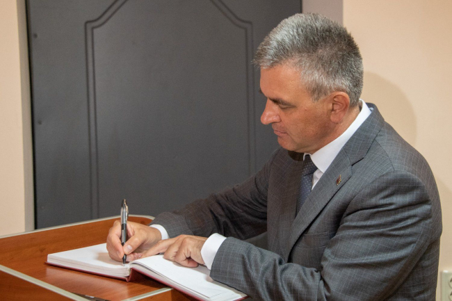 Вадим Красносельский посетил музей Республиканского кадетского корпуса и оставил памятную запись в Книге почетных гостей, поблагодарив коллектив учебного заведения за сохранение истории и преемственность поколений.