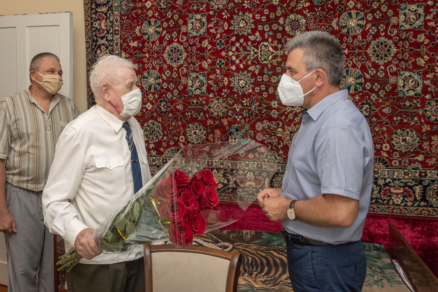 «Вы – участник Великой Отечественной войны, свидетель страшных событий тех лет, защитник Отечества, настоящий герой. В послевоенные годы восстанавливали народное хозяйство. Вы проживаете долгую, полную событий жизнь, вырастили детей, внуков, правнуков. Примите мои искренние поздравления с очередным Днём рождения. Этот год для Вас не юбилейный, но после 90-летия каждый год сравни юбилею. Здоровья Вам и внутренней гармонии. Наслаждайтесь жизнью, общением с детьми, внуками, правнуками. Это – главное», - отметил в беседе с ветераном глава государства.
