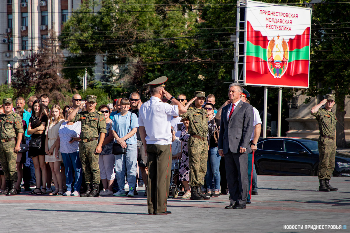 Тирасполь, 9 июля. /Новости Приднестровья/. На столичном Мемориале Славы выпускникам Военного института Министерства обороны им. генерал-лейтенанта А. И. Лебедя вручили дипломы. Молодых лейтенантов лично поздравил Главнокомандующий Вооружёнными силами ПМР Президент ПМР Вадим Красносельский. Глава государства отметил, что молодые люди выбрали не самый лёгкий путь, подчеркнув, что защита Родины – это выбор мужской.