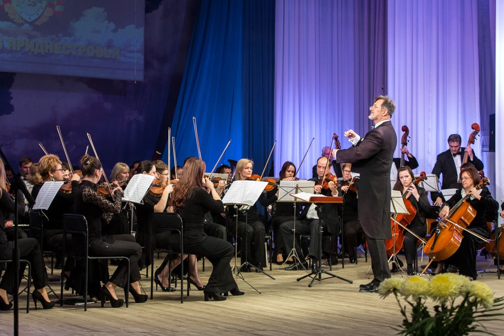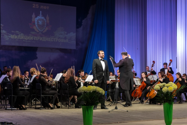 В этот день приднестровских милиционеров поздравили лучшие творческие коллективы республики, в том числе артисты Государственного симфонического оркестра.