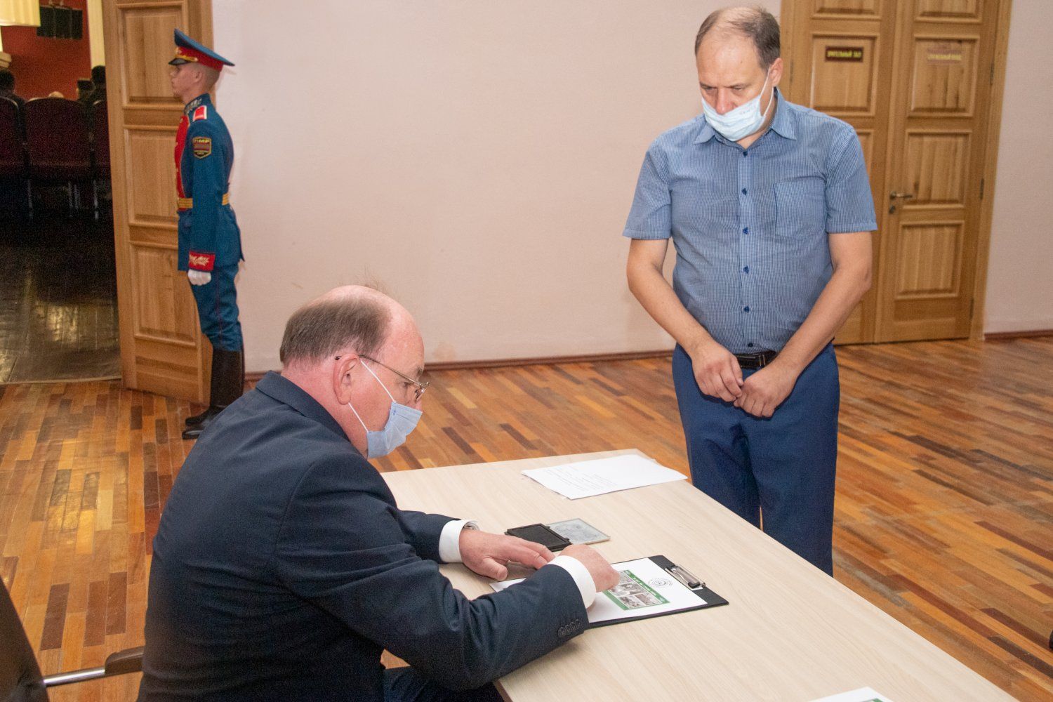 Почетное право также предоставили российскому послу Олегу Васнецову и Первому Президенту ПМР Игорю Смирнову. Провел процедуру директор издательства «Марка Приднестровья» Всеволод Лаврентьев. В качестве гостей на мероприятии присутствовали руководители органов власти республики и члены Объединенной контрольной комиссии.
