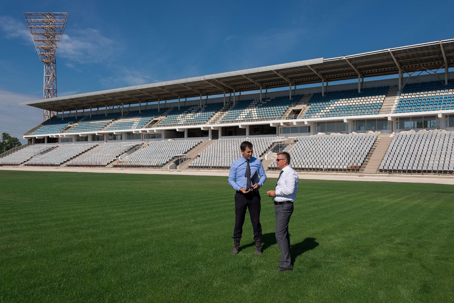 Полным ходом идут строительные работы на бендерском стадионе «Динамо». Здесь частично заменены сиденья в секторе болельщиков, в надлежащее состояние приведено футбольное поле, рабочие приступили к покрытию беговых дорожек (на данный момент готовится к укладке асфальтовый слой, затем поверх него ляжет прорезиненный).
