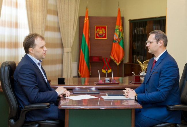 Тирасполь, 5 июля. /ИА «Новости Приднестровья»/. Президент Евгений Шевчук принял и.о. министра иностранных дел. Виталий Игнатьев доложил Главе государства о текущей ситуации в переговорном процессе между Приднестровьем и Республикой Молдова, сообщает пресс-служба Главы государства. Центральной темой встречи стало предметное обсуждение вопросов, связанных с деятельностью экспертных (рабочих) групп. В частности, уже удалось провести встречи экспертов по вопросам развития транспорта и дорожного хозяйства, образования, проблематике уголовных дел, а также по вопросам связи и телекоммуникаций и др.