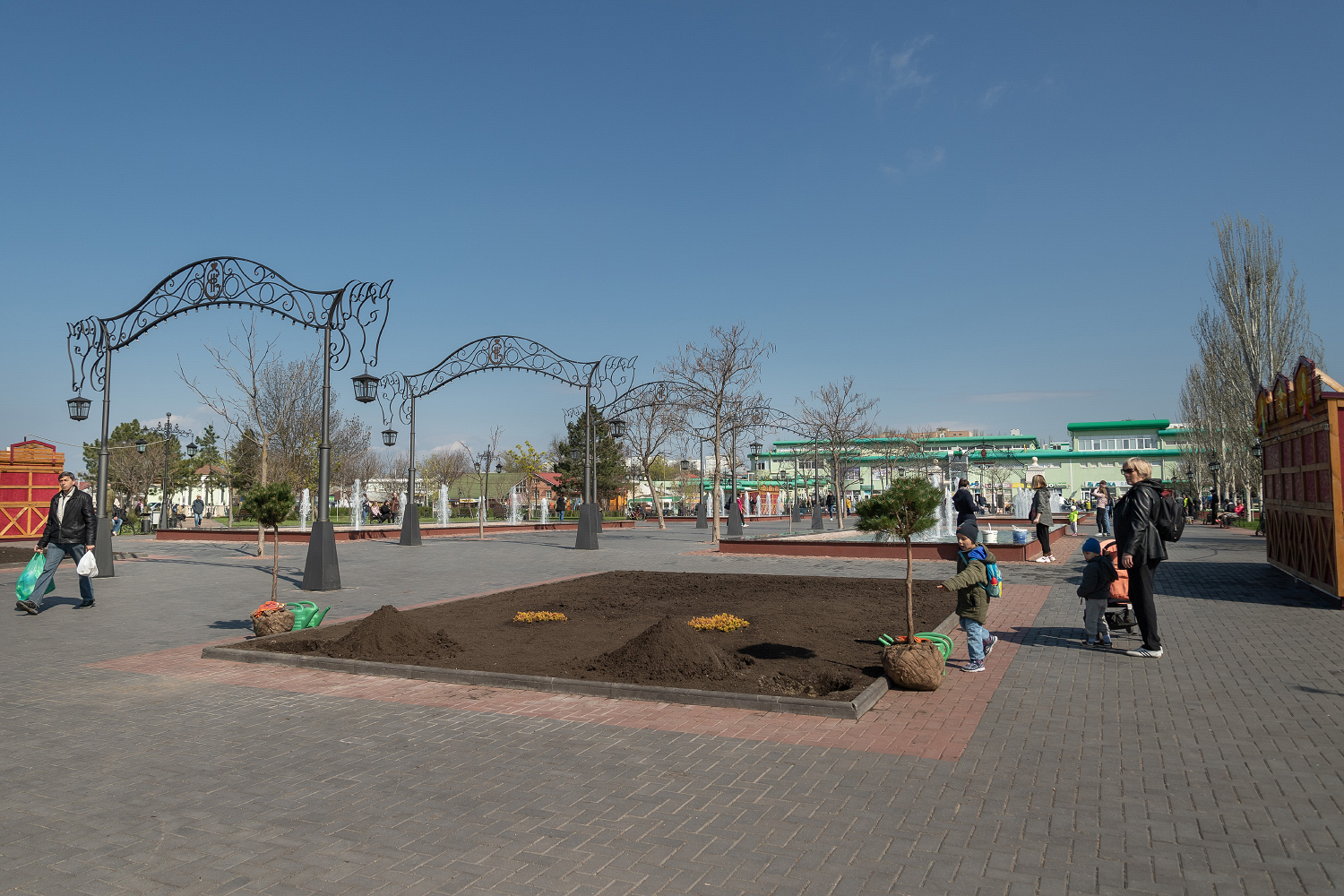 Особое внимание уделяется озеленению. Сегодня завершили посадку многолетников в Екатерининском парке Тирасполя. Здесь уже высажены саженцы шаровидной катальпы, декоративной вишни и черешни, плакучие яблони. У здания будущего ресторана зеленеют крупномерные ели. Финальным этапом масштабных озеленительных работ стало укоренение в районе фонтанного комплекса двух горных сосен, привитых на штамбе. Деревья родом из Украины.