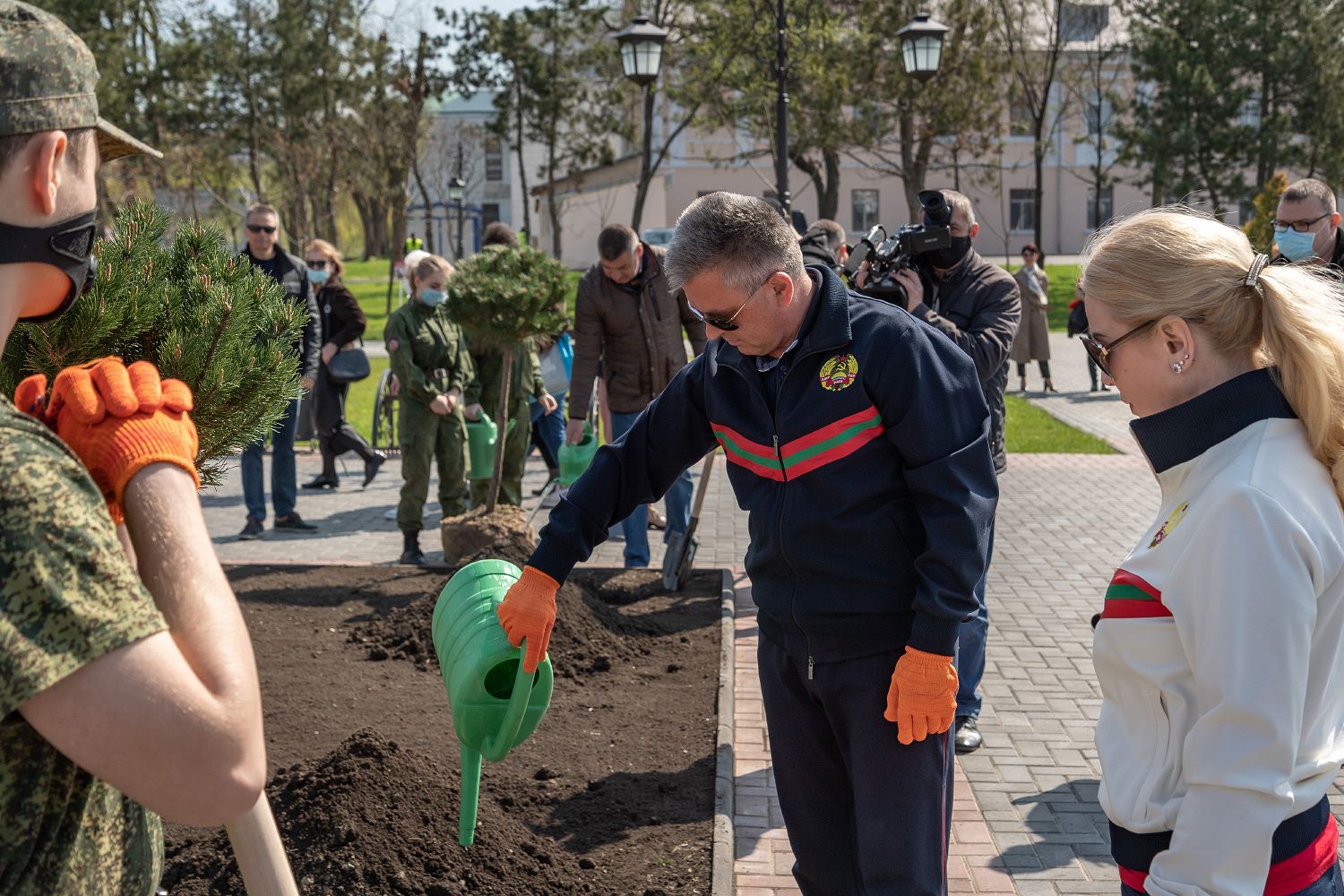 Саженцам не меньше восьми лет, рассказали сегодня Президенту Вадиму Красносельскому, который принял участие в благоустройстве парковой зоны. Глава государства участвовал в субботнике с супругой Светланой Красносельской.