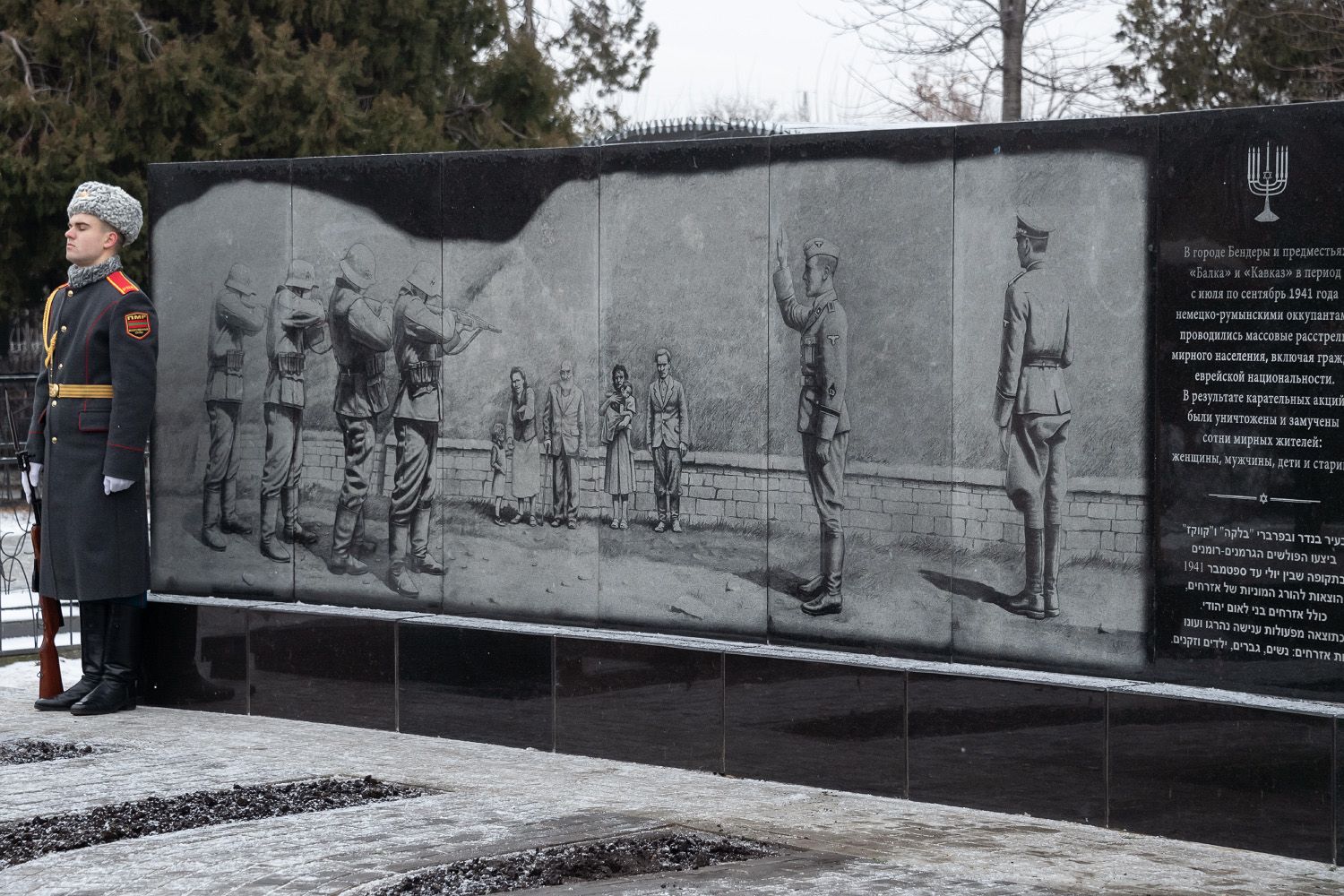 Бендеры, 27 января. /Новости Приднестровья/. По поручению Президента ПМР Вадима Красносельского на бендерском Еврейском кладбище был установлен памятник бендерчанам, расстрелянным немецко-румынскими оккупантами, а также павшим на фронтах Великой Отечественной войны. В нынешнем году это место стало центральной точкой сбора тех, кто счёл своим долгом почтить память погибших на территории Приднестровья жертв Холокоста, сообщает пресс-служба главы государства.