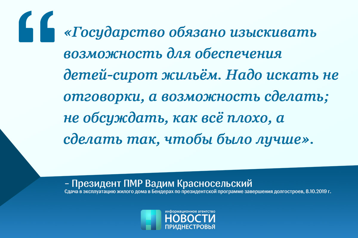 Цитаты Президент Вадим Красносельский об обязательствах перед сиротами 08 Окт.., 2019, 13:52 Приднестровье Доступное жильё