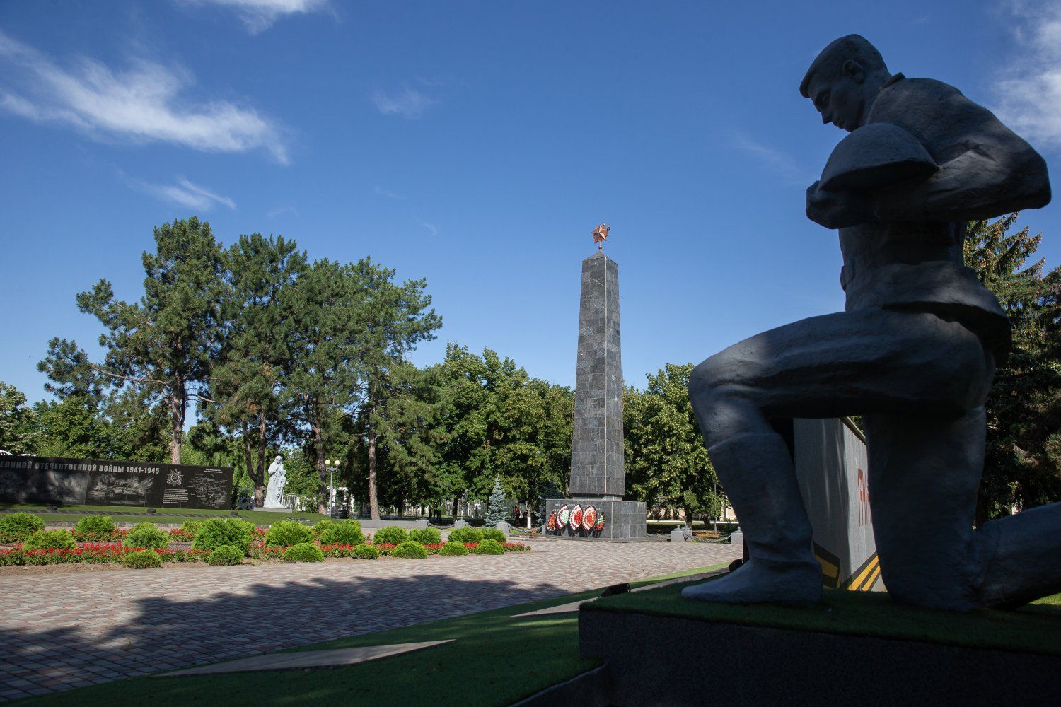 До начала праздничного мероприятия Президент посетил слободзейский Мемориал воинской славы, возложив цветы к памятнику и плитам с именами защитников, погибших в Великую Отечественную и Афганскую войны, а также в трагическом для Приднестровья 1992-м. С главой района Василием Тищенко говорили о проведённой в 2019 году реконструкции мемориального комплекса.