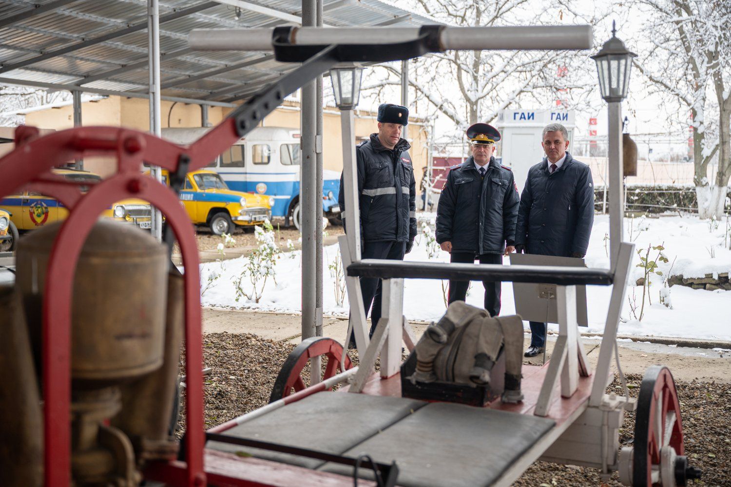 Вадим Красносельский уделил сегодня внимание и организованной на площадке института выставке автомобилей, демонстрирующей эволюцию транспортных средств правоохранительной и спасательной служб. Здесь появились новые ретро-экспонаты. Говорили также о предстоящей организации масштабной экспозиции в Приднестровском государственном музее, активное участие в формировании которой принимает Министерство внутренних дел.