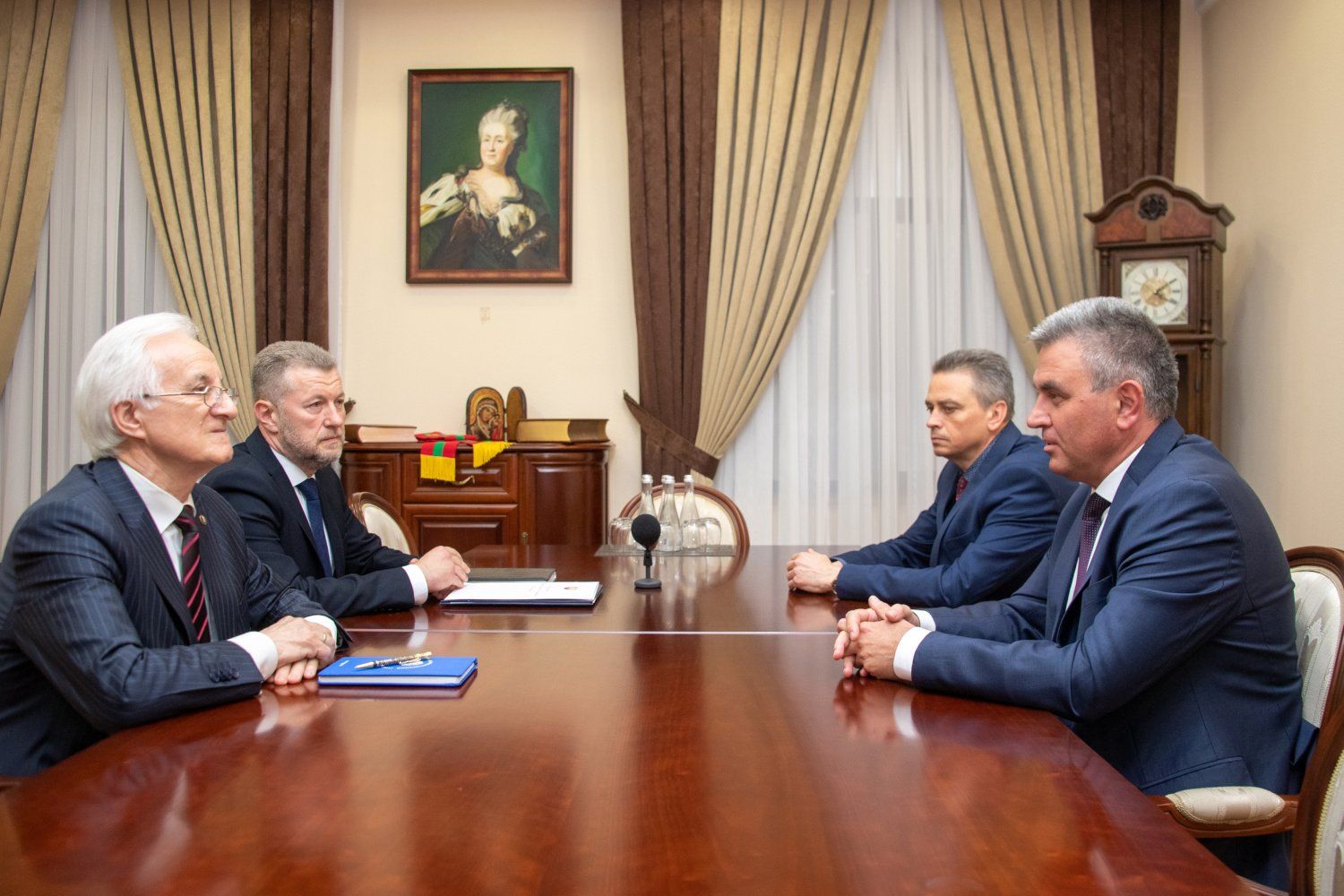 Встреча прошла в рабочем кабинете Президента при участии руководителя Администрации Президента ПМР Сергея Белоуса и Степана Берила, который до этого был ректором ПГУ.