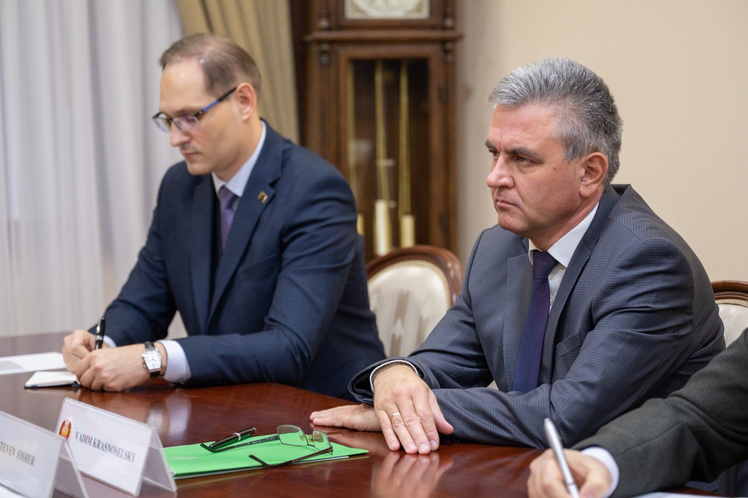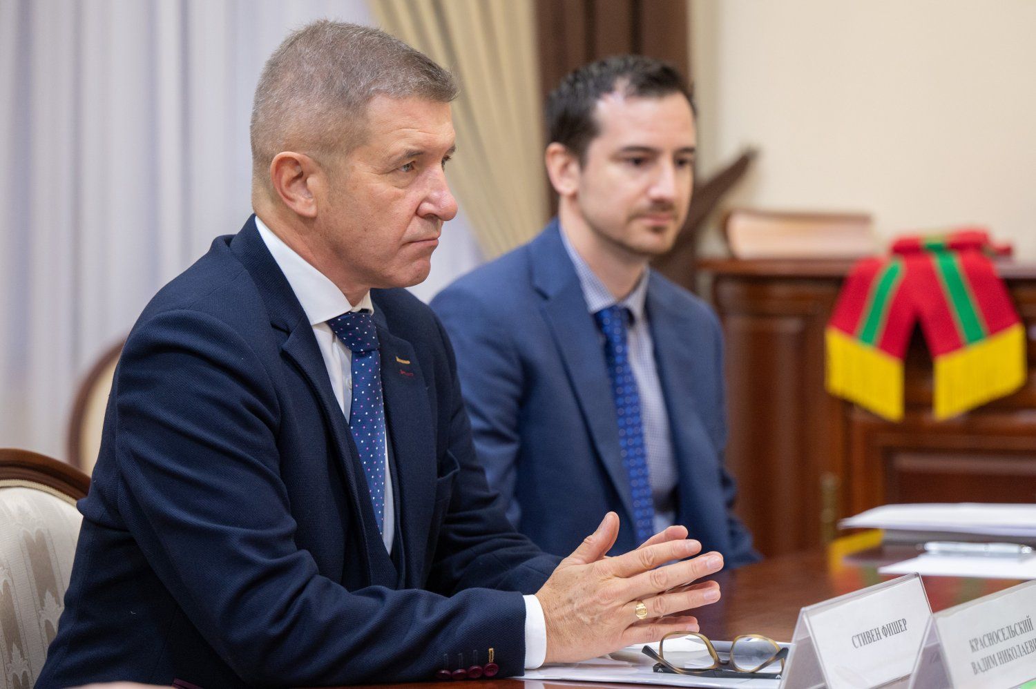 Тирасполь, 15 ноября. /Новости Приднестровья/. В Администрации Президента ПМР состоялась встреча главы приднестровского государства Вадима Красносельского и Чрезвычайного и полномочного посла Его Величества Короля Соединенного Королевства Великобритании и Северной Ирландии в РМ Стивена Фишера.