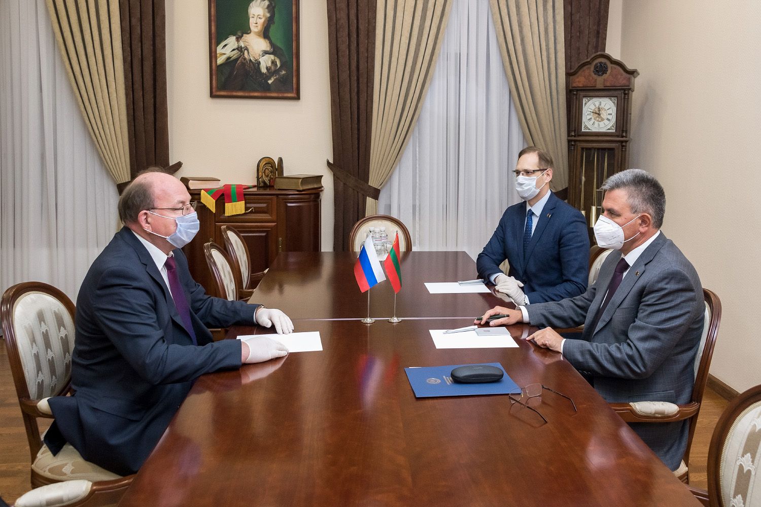 Тирасполь, 28 мая. /Новости Приднестровья/. Президент ПМР Вадим Красносельский встретился с Чрезвычайным и Полномочным послом РФ в РМ Олегом Васнецовым. Разговор, организованный с соблюдением мер безопасности, состоялся в рабочем кабинете главы приднестровского государства. Участие в нём принял министр иностранных дел ПМР Виталий Игнатьев, сообщает президентская пресс-служба.