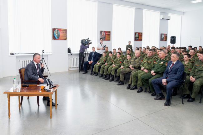 Тирасполь, 24 апреля. /Новости Приднестровья/. По инициативе Президента в актовом зале Суворовского военного училища прошла встреча с военнослужащими Тираспольского гарнизона, курсантами Военного института и суворовцами, сообщает пресс-служба ведомства.