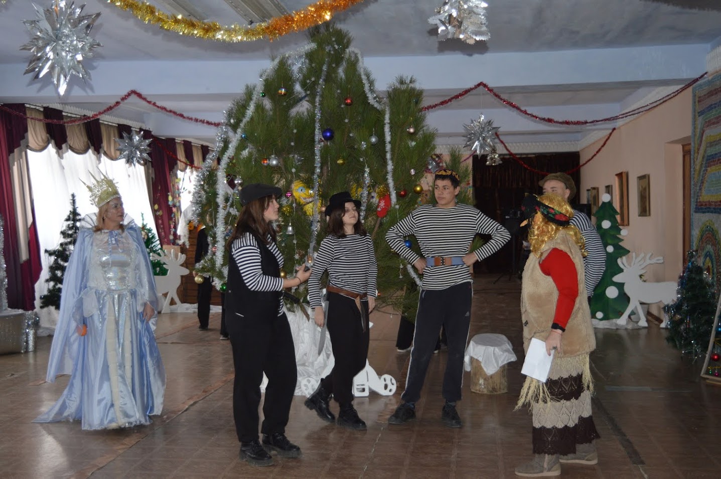 В фойе дворца волшебную новогоднюю атмосферу создавало праздничное убранство и выставка детских работ. В «Каса маре» возле сверкающей украшениями ёлки юных зрителей встречали герои театрализованного представления «Мы так долго ждали этот праздник».