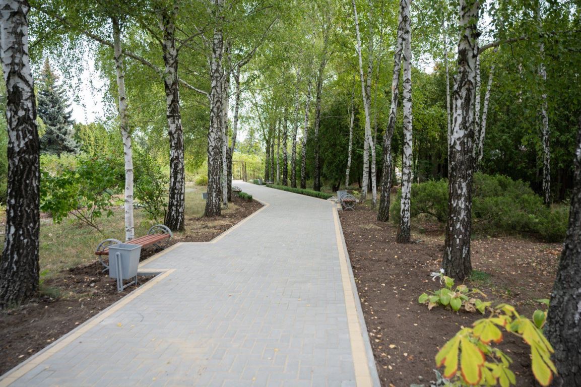 Как сообщает пресс-служба Президента, в дендропарке одновременно обустраивают несколько секторов. В розарии прокладывают дорожки, а так называемые свадебные тропы (где любят гулять и фотографироваться свадебные процессии) мостят плиткой.