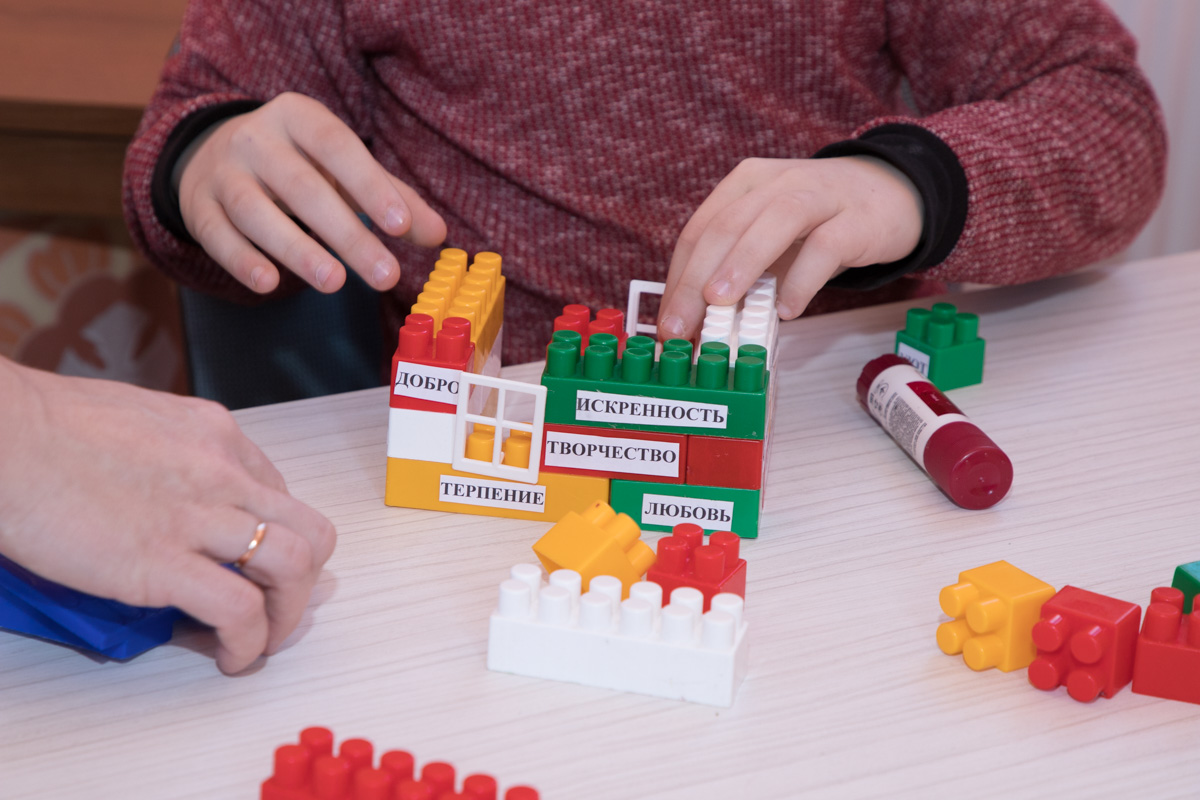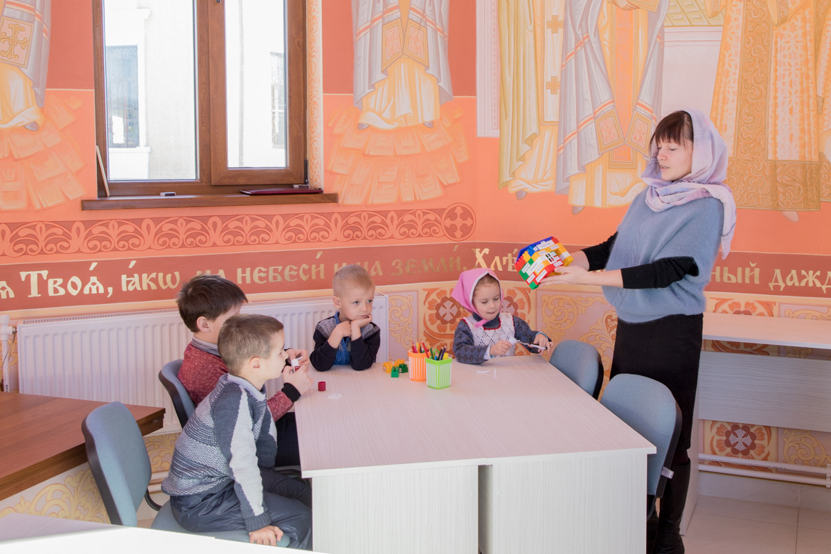 Каждый урок начинается с молитвы, затем педагог даёт ребятам задания. Сегодня дети представили рецепт семейного счастья. У каждого он был свой. Кто-то добавил миллион граммов любви, 100 граммов добра, а кто-то – 100 килограммов молитвы и взаимопонимания. А малыши строили идеальный дом.