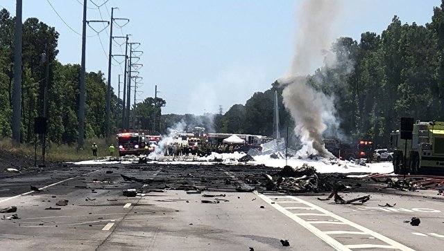 Самолет упал на автомагистраль вскоре после взлета. Представитель полиции назвала настоящим чудом то, что на дороге в этот момент не было автомобилей.