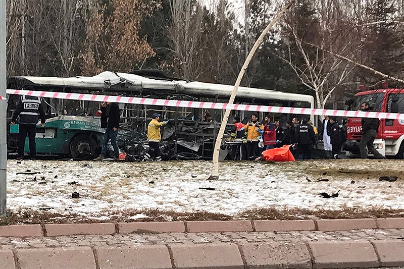 Взрыв прогремел неподалёку от остановки у местного университета. Судя по кадрам, которые передает турецкое телевидение, автобус полностью выгорел изнутри.