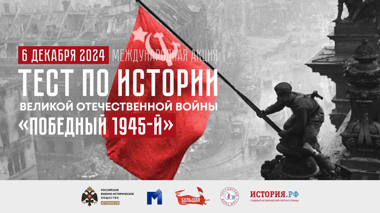 Тирасполь, 5 декабря. /Новости Приднестровья/. Приднестровцев приглашают присоединиться к ежегодной Международной акции «Тест по истории Великой Отечественной войны», которая пройдет в пятницу, 6 декабря. Она приурочена к памятной дате – Дню героев Отечества. В этом году тест посвящен 80-летию Великой Победы. Напомним, что акция проводится в Российской Федерации с 2015 года.