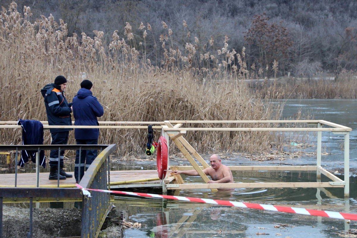 На городском пляже в Каменке в этот день тоже было многолюдно. Пришедшие совершить обряд омовения признавались, что крещенская купель укрепляет веру и дарит здоровье.