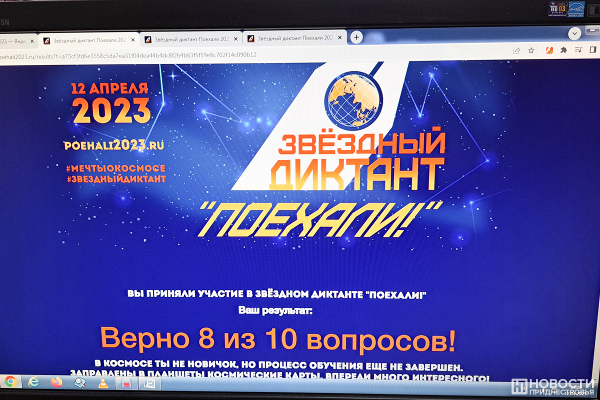 Тирасполь, 12 апреля. /Новости Приднестровья/. В Тирасполе сегодня писали Звёздный диктант «Поехали!». Приднестровцы присоединились к акции сразу же после её запуска, который был 2 года назад в честь 60-летия полёта Юрия Гагарина в космос.