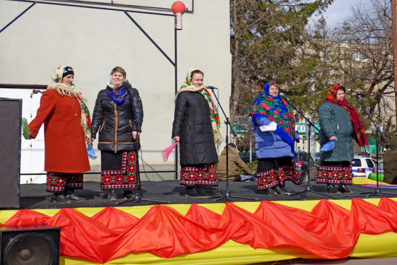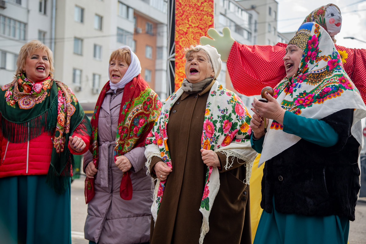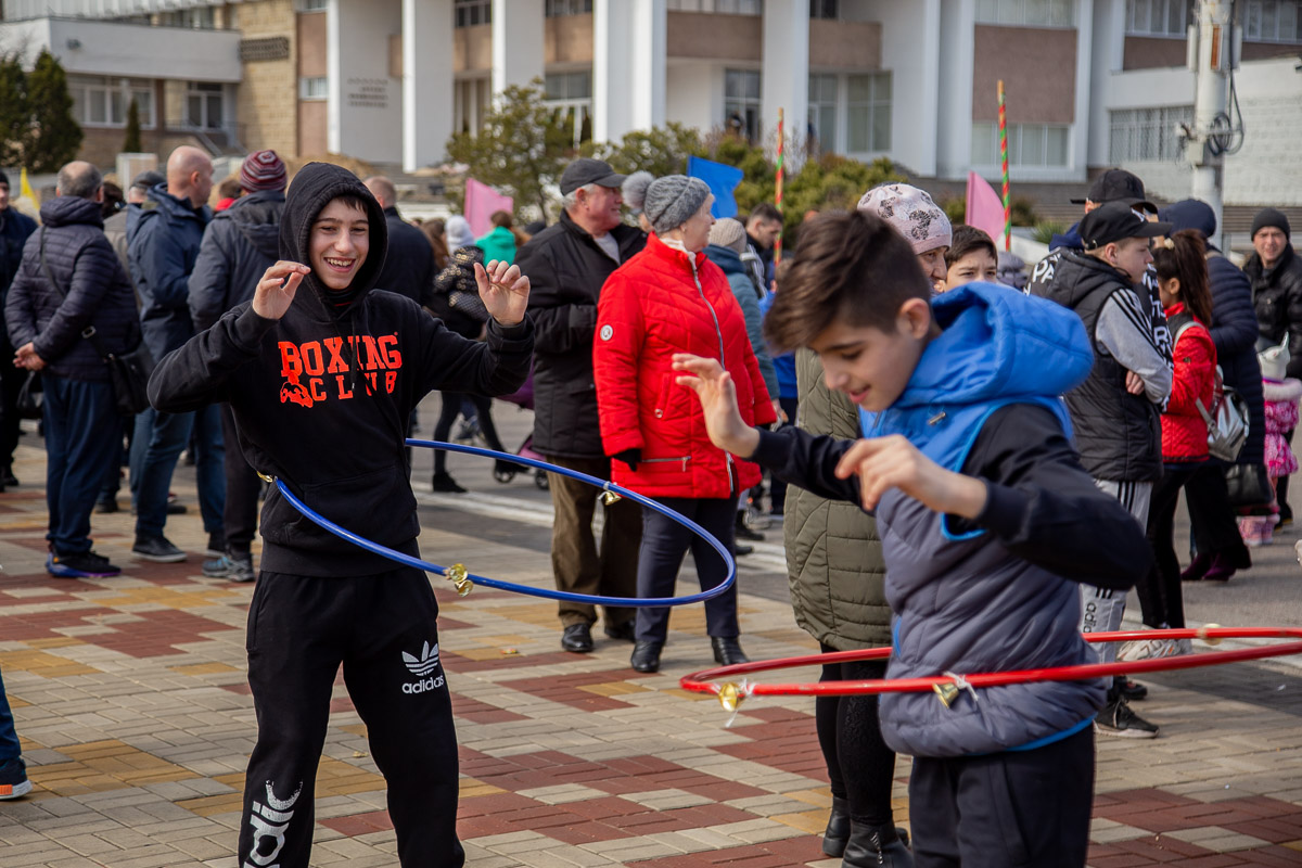 На площади Защитников в Дубоссарах собрались люди разных национальностей. Для них творческие коллективы Управления культуры подготовили интересную программу с главными символами и атрибутами праздников – Масленицы и Мэрцишора.