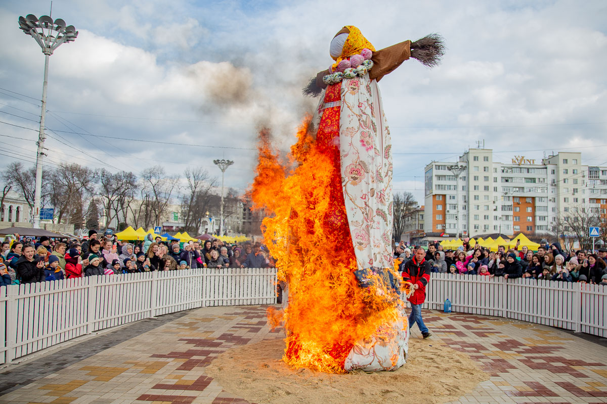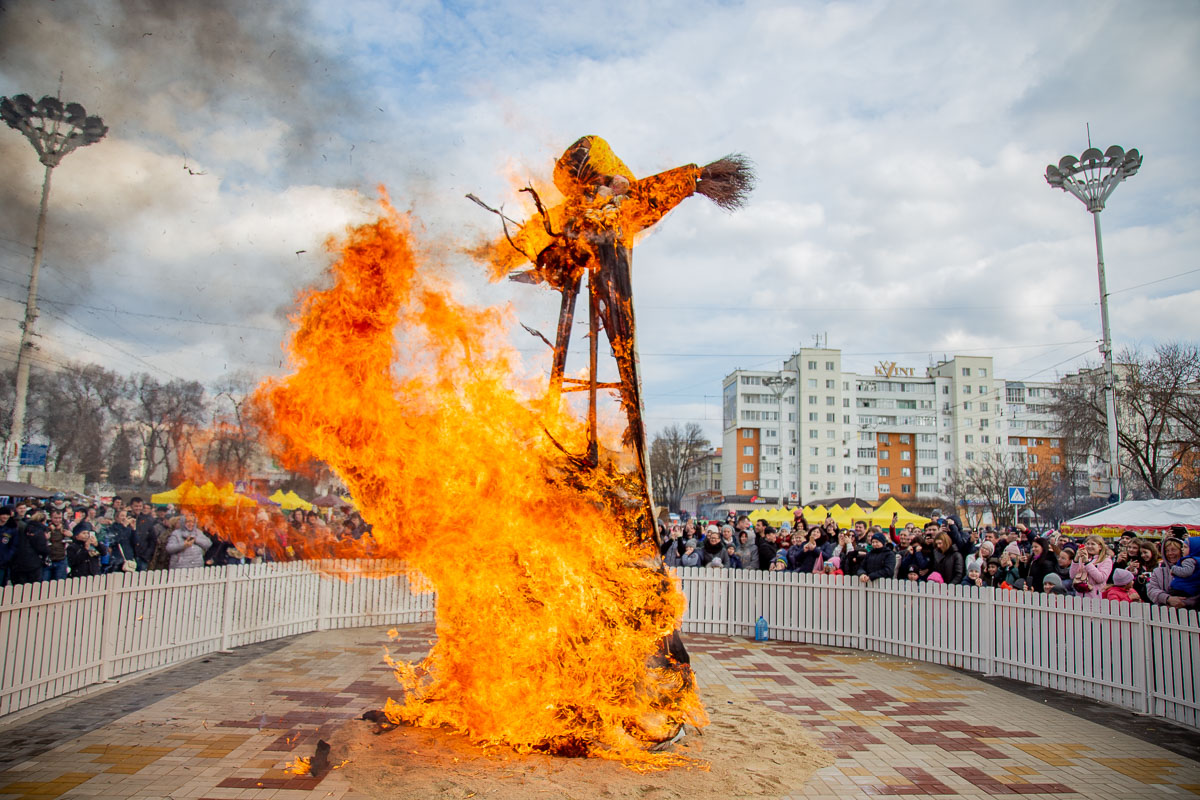 По традиции народный праздник завершился сжиганием чучела – символа зимы. Считается, что таким образом люди освобождают себя от старых обид, накопленных за год, и встречают новый год с чистым сердцем и лёгкой душой.