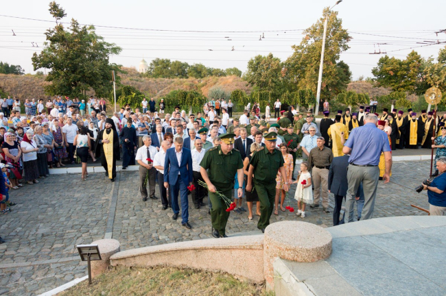 Бендеры, 29 августа./Новости Приднестровья/. Лития и возложение цветов к памятнику воинам 55-го Подольского пехотного полка стали частью памятных мероприятий в Бендерах. В них приняли участие Президент ПМР Вадим Красносельский, представители ветвей государственной власти, духовенство, жители города.