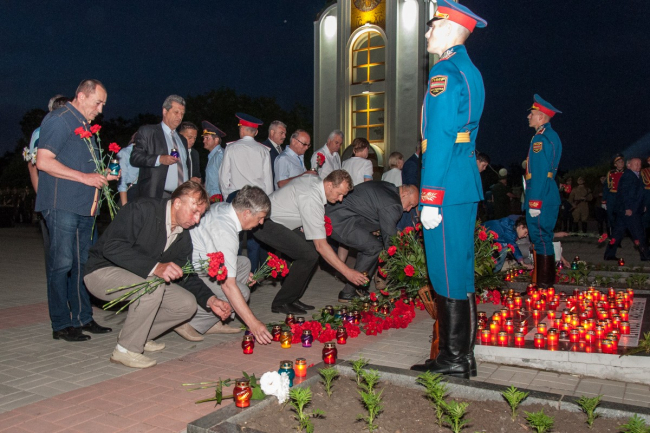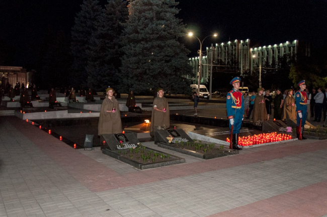 Тирасполь, 22 июня. /Новости Приднестровья/. В столице Приднестровья на рассвете зажглись свечи памяти по погибшим в годы Великой Отечественной войны. На Мемориале Славы около четырех часов утра собрались жители Тирасполя, высшее руководство страны, представители Южной Осетии и Абхазии, а также командование Оперативной группы российских войск (ОГРВ) в Приднестровье, чтобы почтить память павших в боях с фашизмом во имя Родины, свободы и жизни народов.