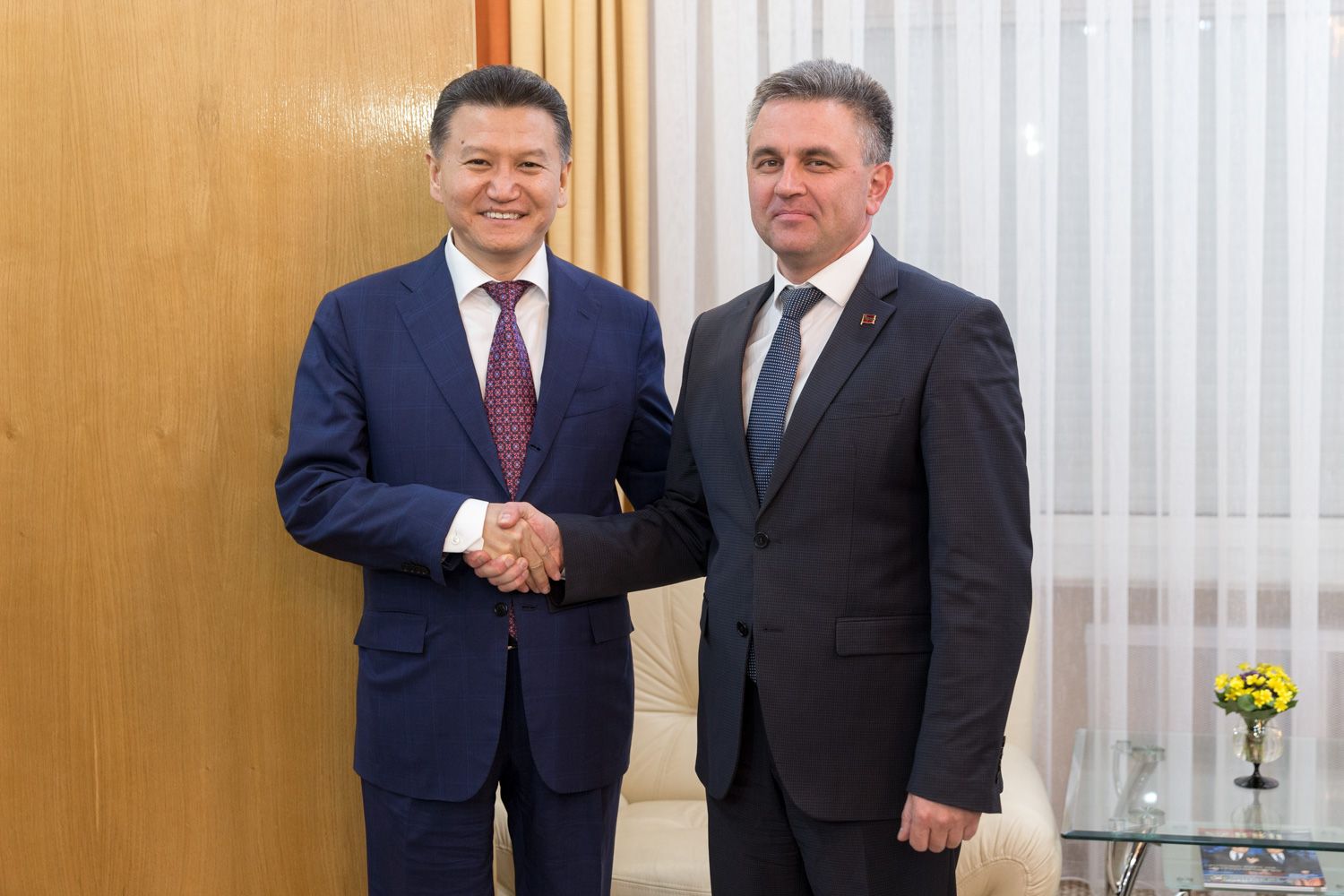 «Для меня и моих коллег большая честь быть здесь. Мы первый раз на приднестровской земле. Разрешите передать горячий привет от жителей Республики Калмыкия (18 лет я был ее Президентом), а также от многомиллионной армии шахматистов всемирной шахматной организации ФИДЕ. Думаю, во время этого первого визита мы обсудим рамки и формы нашего сотрудничества», — отметил президент ФИДЕ Кирсан Илюмжинов.