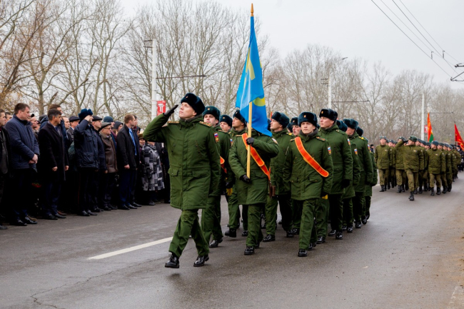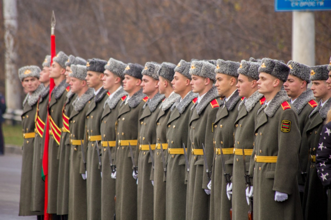 После освящения Арки «Блаженны миротворцы» вдоль нее праздничным маршем проследовали расчеты силовых структур Приднестровской Молдавской Республики и курсантов учебных заведений Министерства обороны и МВД ПМР.