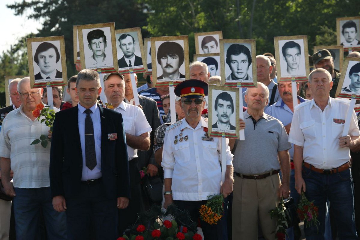 Памятные мероприятия сегодня прошли во всех городах и районах республики. В Дубоссарах прошло шествие «Бессмертного полка». Жители города прошли с портретами погибших и умерших защитников Приднестровья к Мемориалу Воинской Славы, возложили цветы к гранитным плитам и почтили память павших минутой молчания.