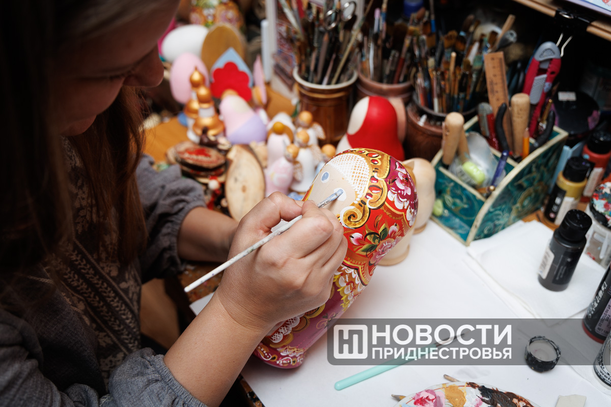 15 Apr., 2024, 13:44Тирасполь, 15 апреля. /Новости Приднестровья/. В домашней мастерской Оксаны Королёвой оживает очередная русская красавица. Круглолицая и румяная матрёшка, расписанная в авторском стиле, становится обладательницей больших голубых глаз и роскошных ресниц. Мастерица создаёт для своей коллекции ещё одну уникальную деревянную куклу. Во время росписи Оксана рассказывает историю появления матрёшки.