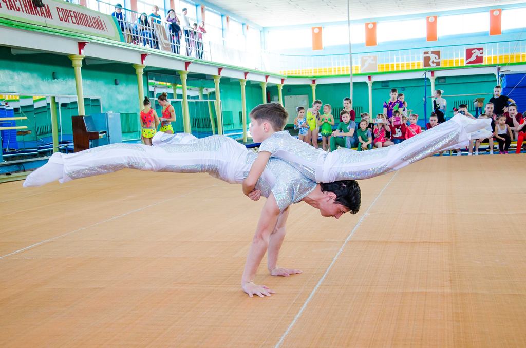 На одном ковре выступали опытные акробаты и начинающие спортсмены